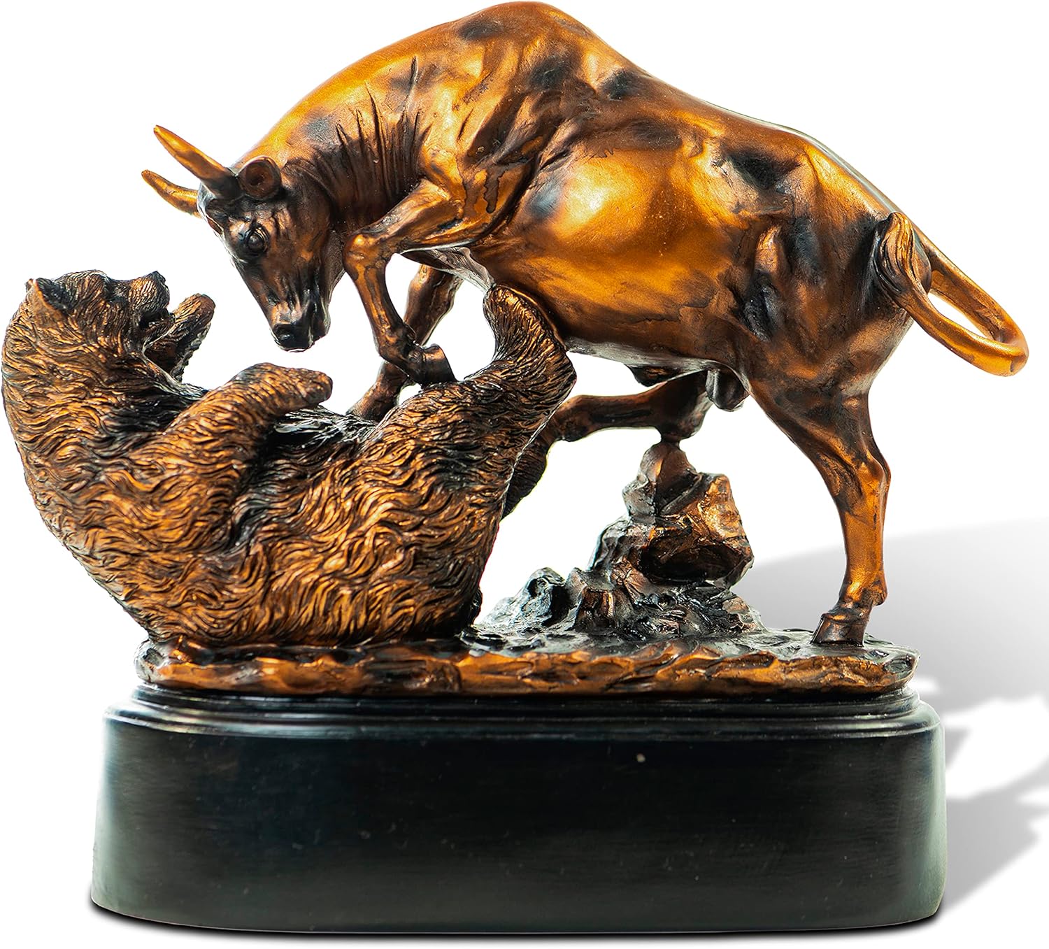 I liked this wonderful bull-bear battle statue, and I wished I owned it, so I bought it. This cold-cast bronze statue of the classic bull and bear has a metallic surface that is sure to impress.